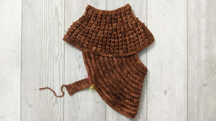 ^There should be an equal number of unworked stitches on each arm opening of the yoke.